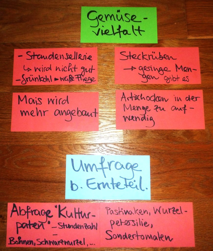 Natürlich ging es gemeinsam auch an die ersten Überlegungen für das kommende Anbaujahr. Einige der Ideen – beispielsweise zur Gemüsevielfalt – stellen wir in einer Umfrage unter den Ernteteiler:innen demnächst auch nochmals vor und freuen uns auf Feed-back.